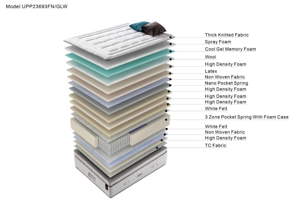 تحتوي على نانو بوكيت سبرينج وهي مصدر الدعم للمرتبة لتحفظ ثبات الضغط وتساعد في اتزانها مصنوعة من الفولاذ، مما يعني أنه من المستحيل أن تنكسر. وسوف تبقى وسادة داعمة لسنوات وسنوات، دون الحاجة إلى الصيانة وهي طبقة راحة فائقة - فهي عبارة عن وسادة فخمة مصنوعة من مادة متينة للغاية، تساعد في تخفيف نقاط الضغط، وتوفر أيضًا دعمًا متساويًا للظهر حيث يتم توزيع وزنك بين آلاف النوابض النانوية الصغيرة. وهذا يجعلك تشعر بالتوقف، وكأنك تطفو. لن تشعر أبدًا بهذا الشعور "أنا غارق جدًا وأنا عالق" - إنه مجرد راحة نقية وسهلة.